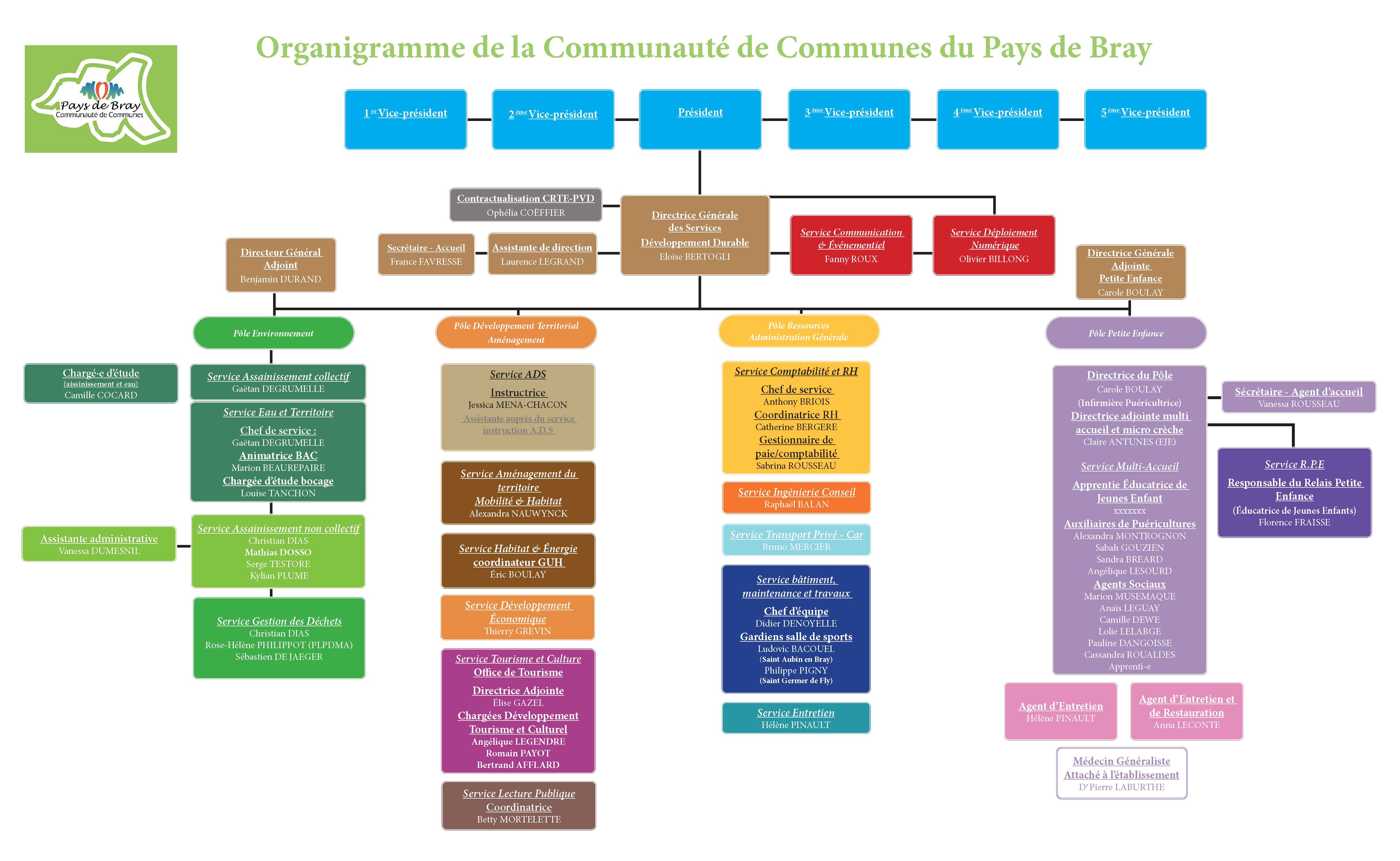 Les agents de la Communauté de Communes participent activement au bon déroulement des projets. Ils sont répartis dans différents pôles sous l’autorité de la Direction Générale des Services avec différentes missions :